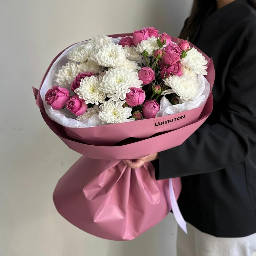 хризантемы - 4 дана кустовые пионовидные розы - 3 дана