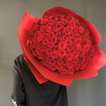 Букет из 101 красных розы - Высота 50 - 60 см. - Фирменное оформление. - Фирменный шоколад в подарок!