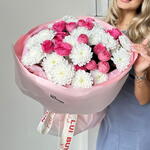 Роскошный букет из кустовых пионовидных роз и хризантем подарит незабываемые эмоции. Это классический способ выразить чувства