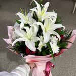 Лилия - 1 дана Хризантема бұтасы - 3 дана Раушан - 3 дана Зелень - 5 дана