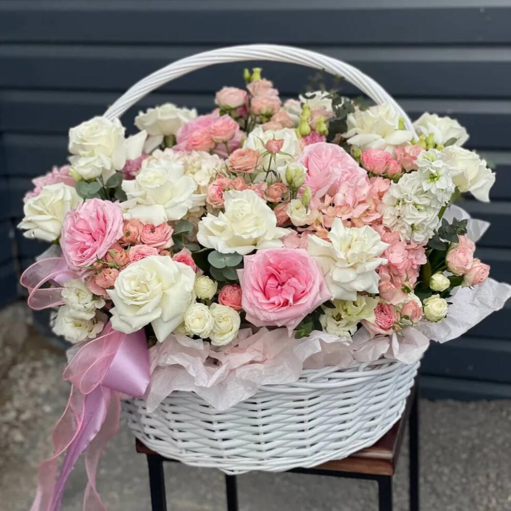 Эвкалипт - 6 дана Тыныштық - 6 дана Оазис - 6 дана эустома mix - 10 дана роза армения кустовая - 17 дана роза эквадор 50 см mix - 23 дана гортензия колумбия mix - 2 дана писташ mix - 7 дана матиола mix - 1 дана роза кустовая бомбастик 50 см mix - 2 дана
