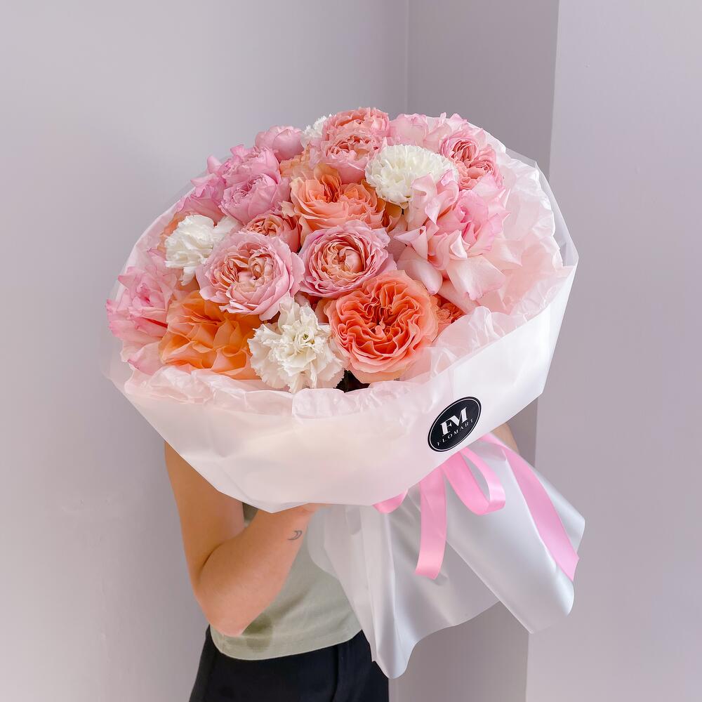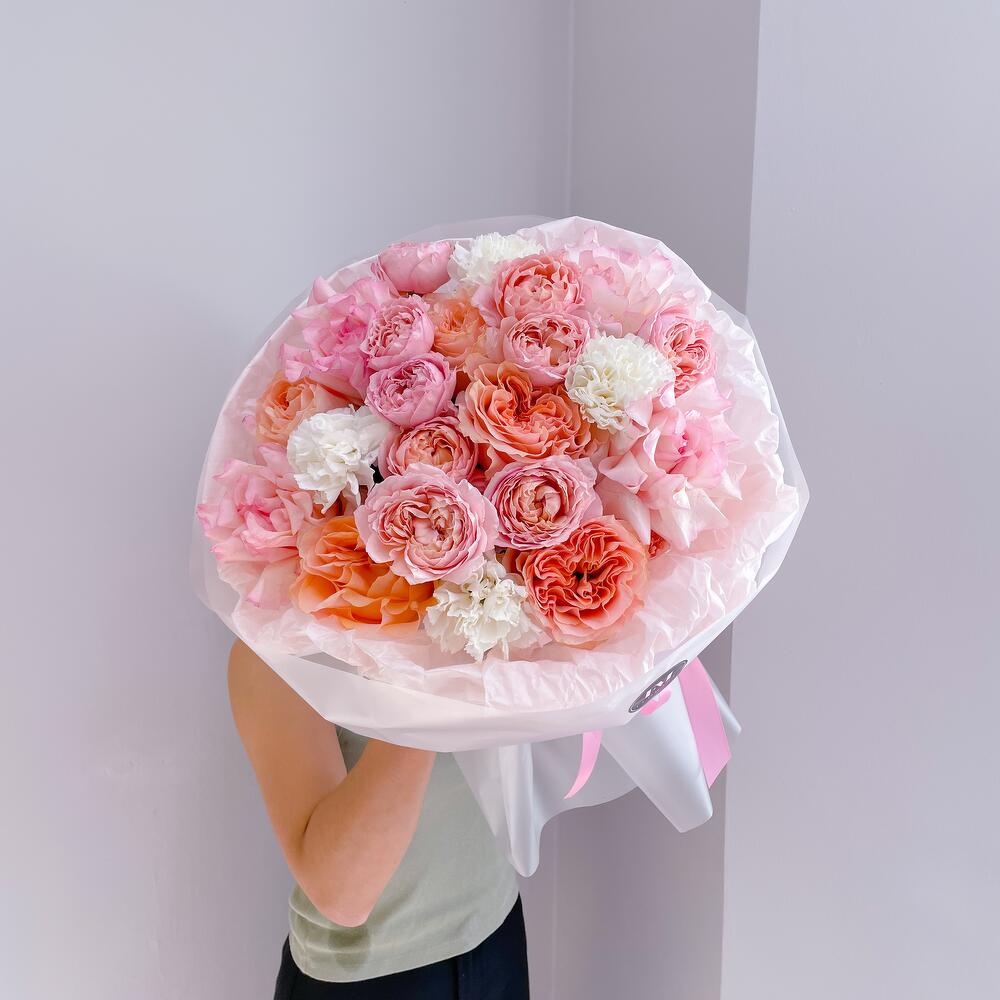 голландские розы - 3 дана пионовидные розы - 5 дана бұта раушандары - 3 дана диантусы - 4 дана