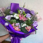 Флорист связалась сразу во время составления композиции, букет свежий и яркий! Доставка во время. Спасибо большое