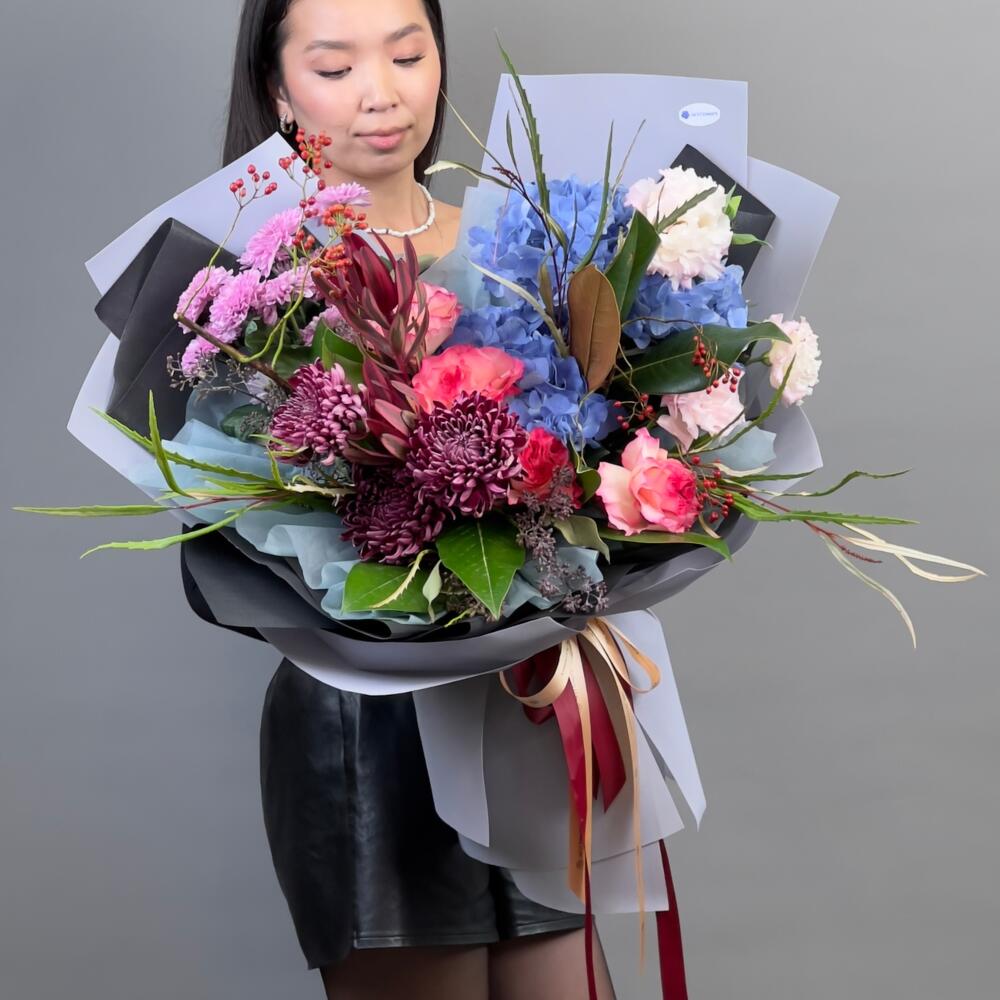 Вдохновленный лесными красками, этот букет раскрывает тайны осени в каждом цветке. Оригинальные оттенки и текстуры делают его особенным, подходящим для тех, кто хочет выделиться и удивить.