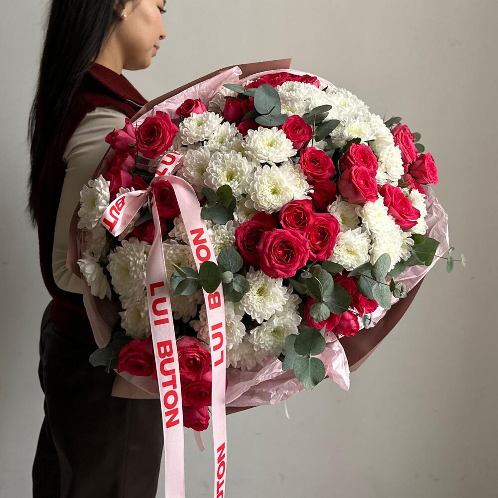 Эвкалипт - 3 дана хризантемы - 11 дана бұта раушандары - 11 дана
