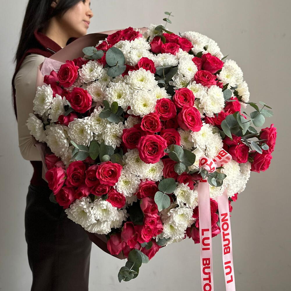 Эвкалипт - 4 дана хризантемы - 19 дана бұта раушандары - 19 дана