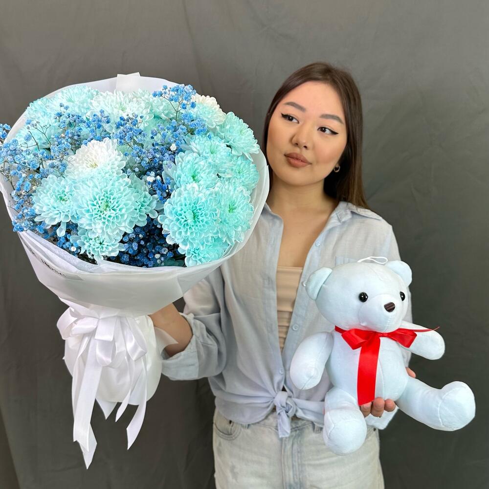 Гипсофила - 4 дана Хризантема бұтасы - 5 дана Мишка плюшевый - 1 дана