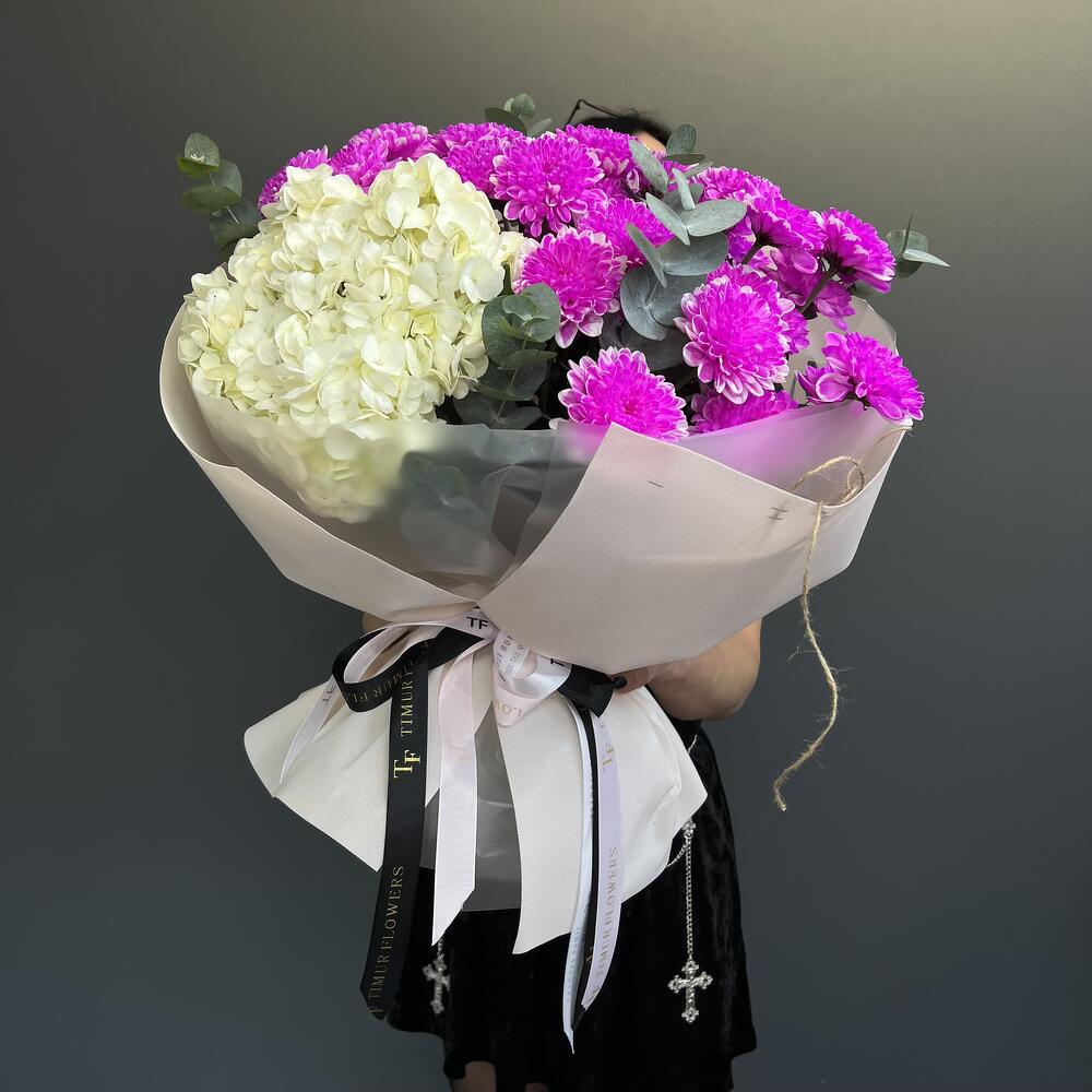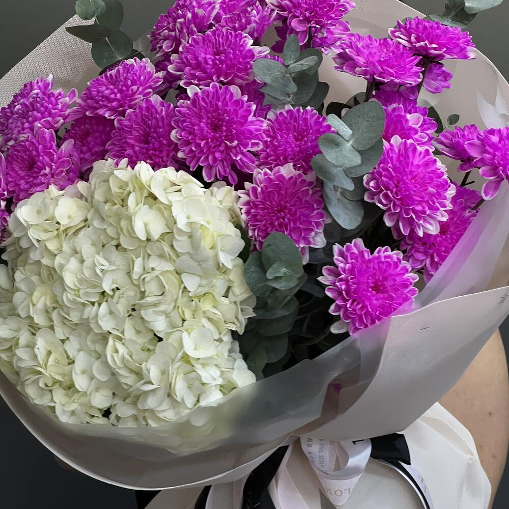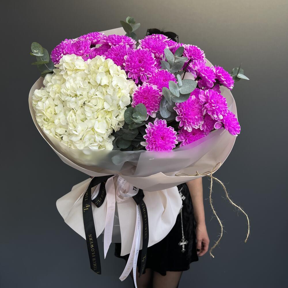Букет «Яркий акцент» Гортензия и Хризантема кустовая