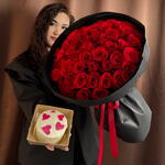 51 раушаннан тұратын букет+бенто торт Сүтті қыз (350гр)