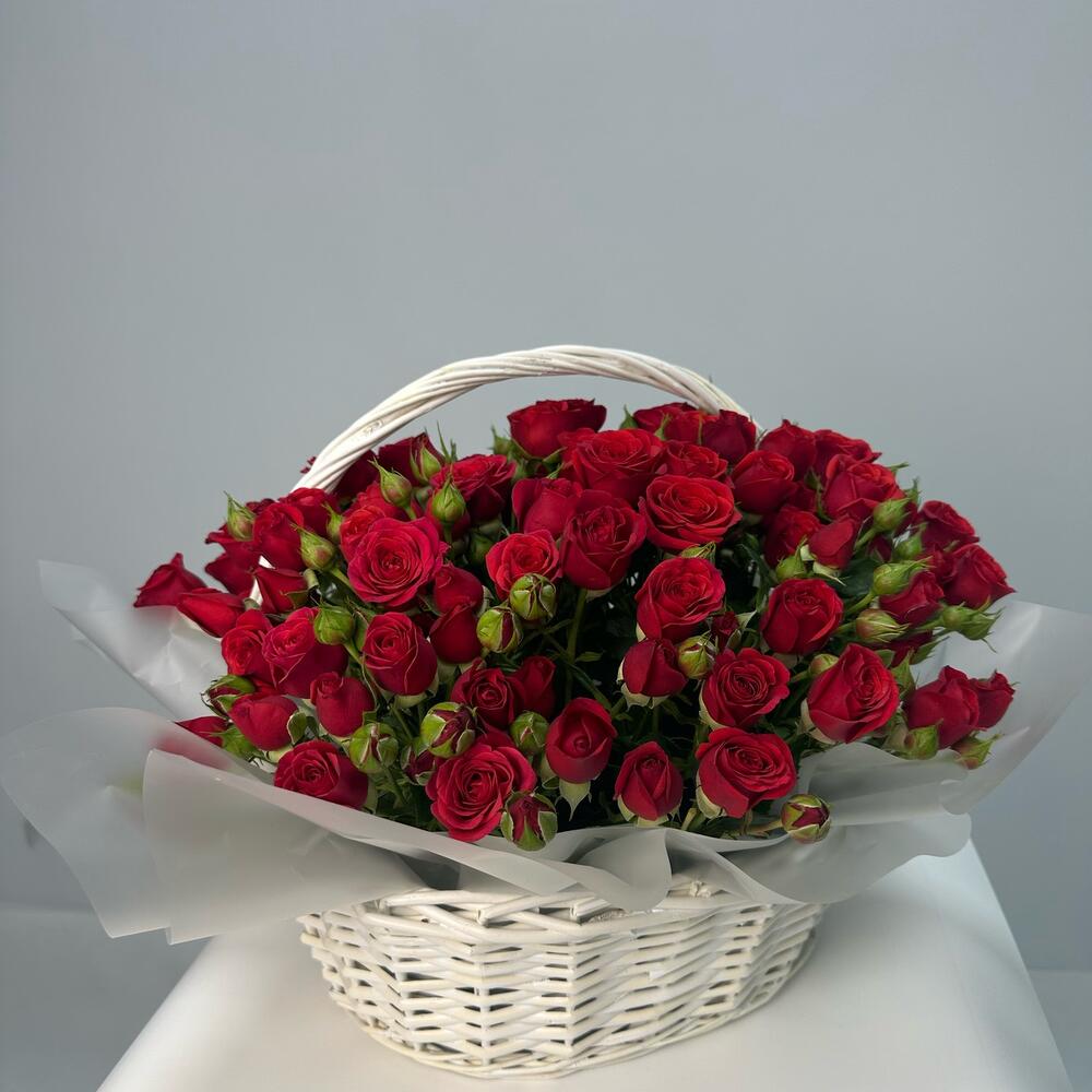 25 кустовых роз в корзине