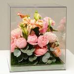 Ваксфлауэр - 1 дана Калла - 1 дана Эвкалипт - 3 дана Эустома - 2 дана Гербера - 2 дана Ашықхат - 1 дана джульетта роза пионовидная - 4 дана Акриловый бокс - 1 дана витамины для цветов (кризал) - 1 дана