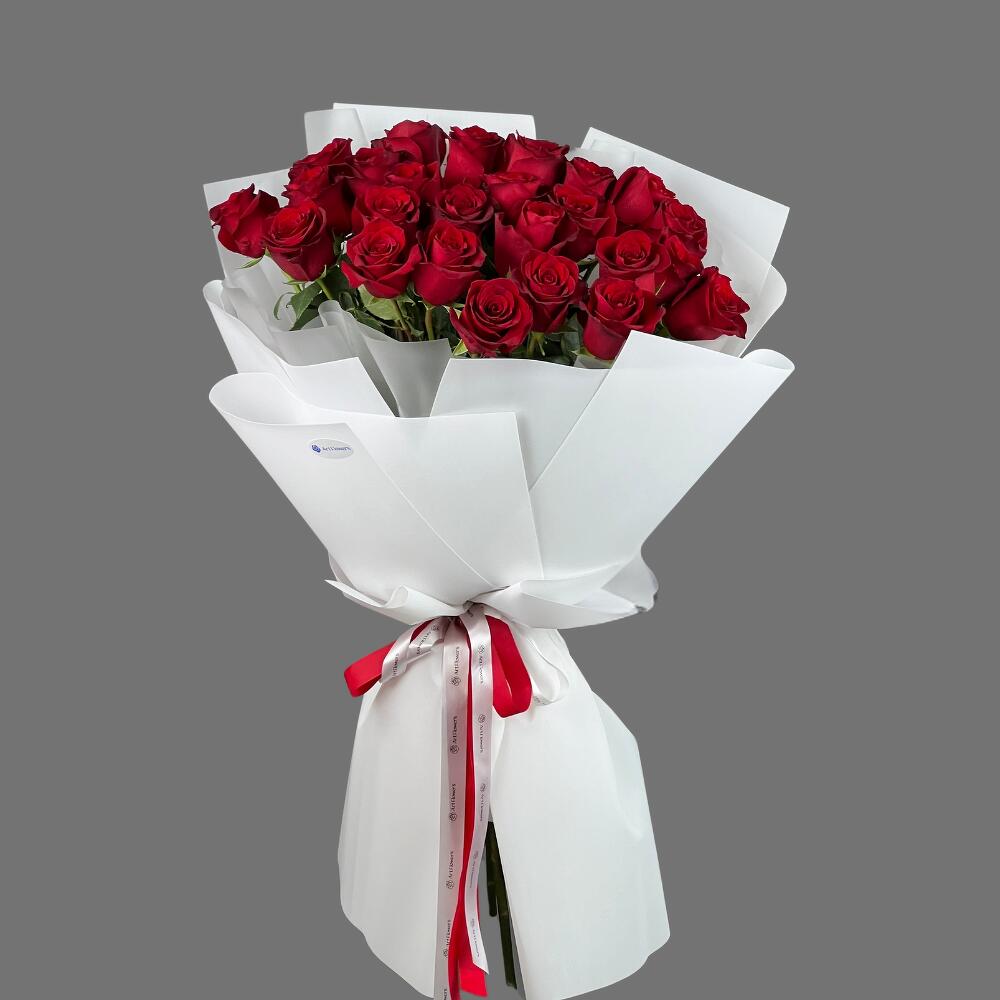 Цветы Букет Art Flowers 25 красных Голландских роз 90 см