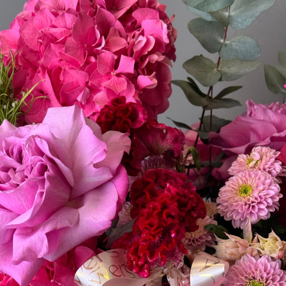Яркое сочетание розовых и малиновых оттенков, которое наполняет радостью и энергией. Дарит атмосферу праздника.