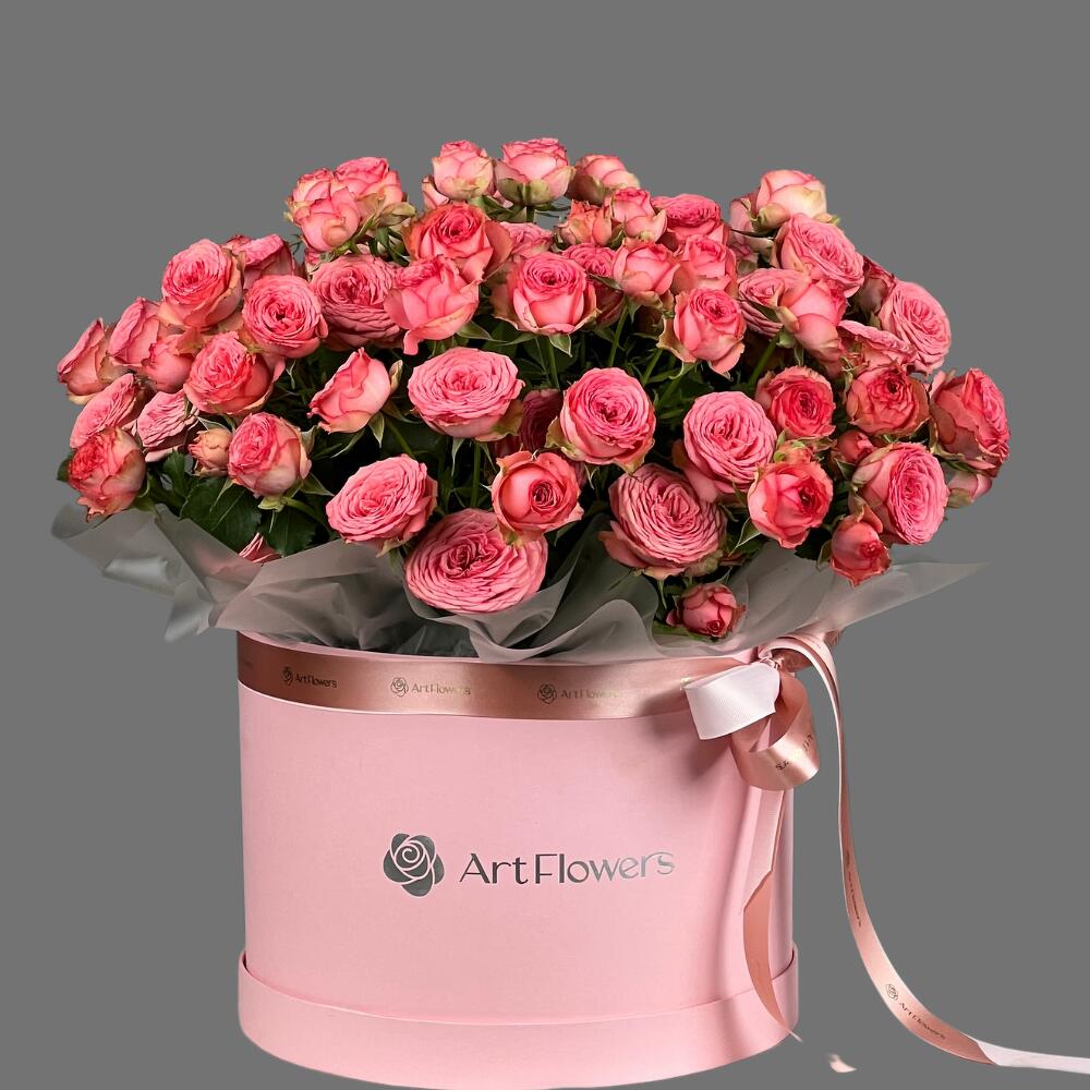 Букет Очарование роз Утонченный букет из спрей-роз в стильной коробке. Лёгкий, воздушный и огненный, он станет дополнительным комплиментом для самых нежных и трепетных признаний.