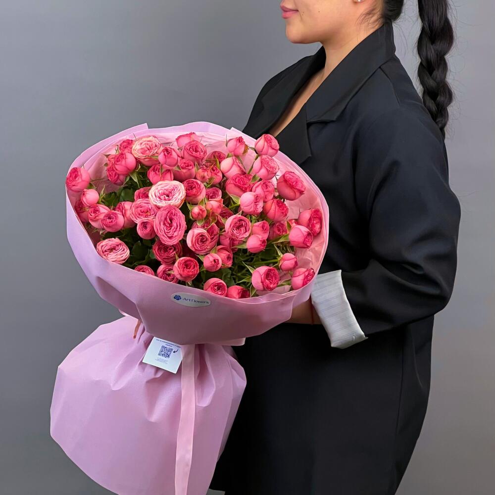 Этот букет не про скромность. Он про страсть, дерзость и внутренняя сила. Пышные кустовые розы будто созданы для героини романа: немного дерзкой, немного ранимой, но всегда незабвенной. Идеален для женщины, которая не ждёт цветы — она их заслуживает. Каждый день.