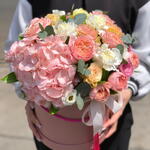 Гортензия - 1 дана Эвкалипт - 2 дана Гвоздика - 5 дана Эустома - 5 дана пион тәрізді бұта раушаны - 4 дана