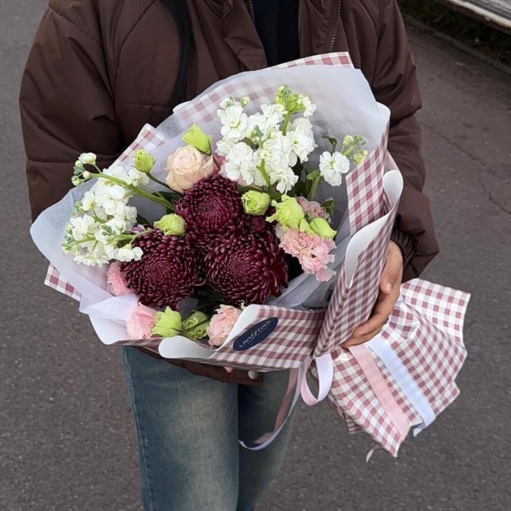 Маттиола - 2 дана Эустома - 4 дана бигуди хризантема - 3 дана
