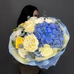 Гортензия - 1 дана Лизиантус - 3 дана Роза желтая - 2 дана Хризантема бұтасы - 2 дана Пионовидная роза - 3 дана