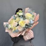 Лизиантус - 3 дана Маттиола - 1 дана Эвкалипт - 1 дана Диантус - 3 дана Роза пионовидная - 5 дана