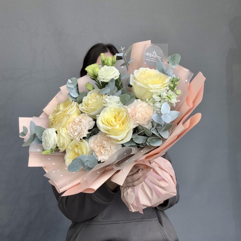 Идеальный, красивый и свежий букет! Быстро, аккуратно все девочки сделали) Большое спасибо!!!