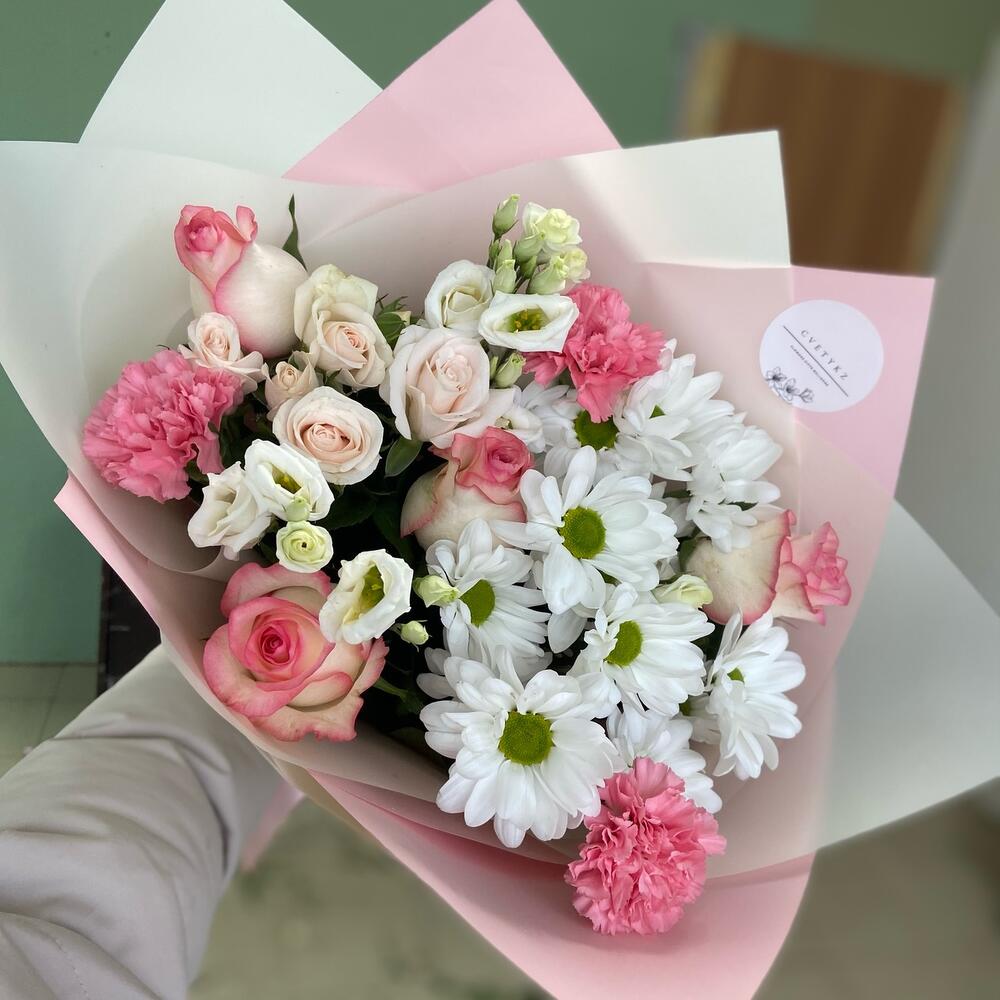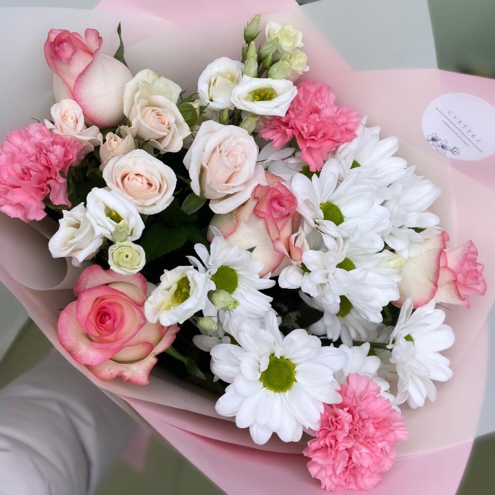 Хризантема бұтасы - 1 дана Бұта раушаны - 1 дана Гвоздика - 3 дана раушан - 5 дана