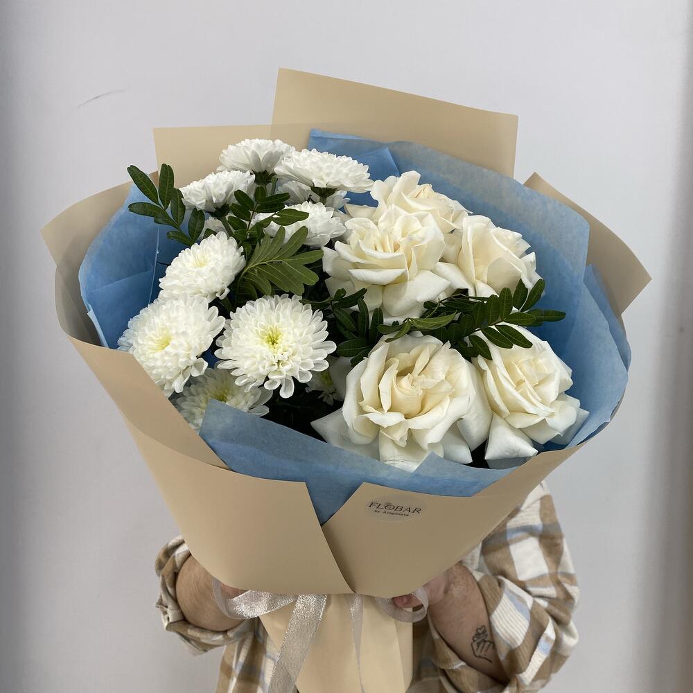 Хризантема бұтасы - 2 дана Раушан - 5 дана Орау - 1 дана Фисташка пучок - 1 дана