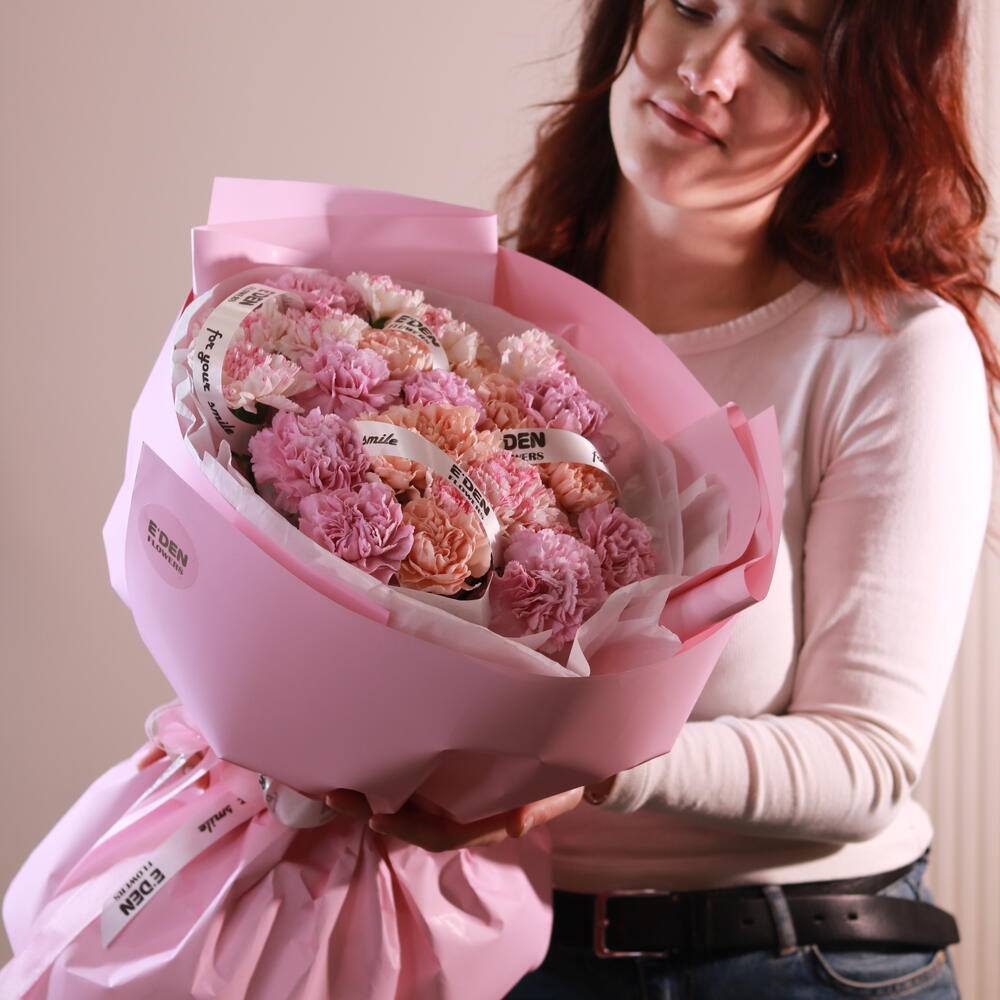 Шоқ «Гармония» — әр гүл жапырағындағы нәзіктік «Гармония» диантустардың пудралы-қызғылт гаммадағы араласынан құрастырылған. Қалың, фактуралы бүршіктер жұмсақ гүл бұлты әсерін береді — көлемді, ұқыпты және өте жайлы көңіл-күй сыйлайды. Бұл шоқ — жылылық, қамқорлық пен тыныш сезімдер туралы. Түсі: нәзіктен қаныққа дейінгі қызғылт микс Қасиеті: жұмсақ, үйлесімді, жүрек тебірентерлік Тұрақтылығы: дұрыс күтіммен 16 күнге дейін «Гармония» нәзік көрінсе де, көзге түсерлік — әдемі формада нәзіктік сыйлағыңыз келсе идеалды таңдау.