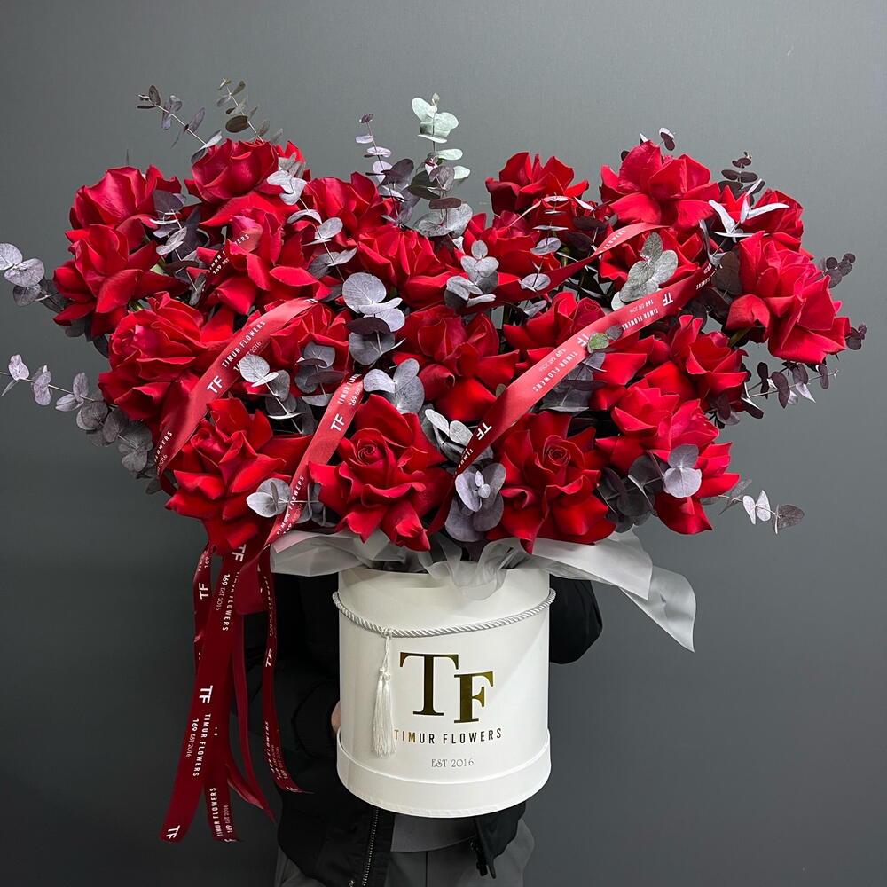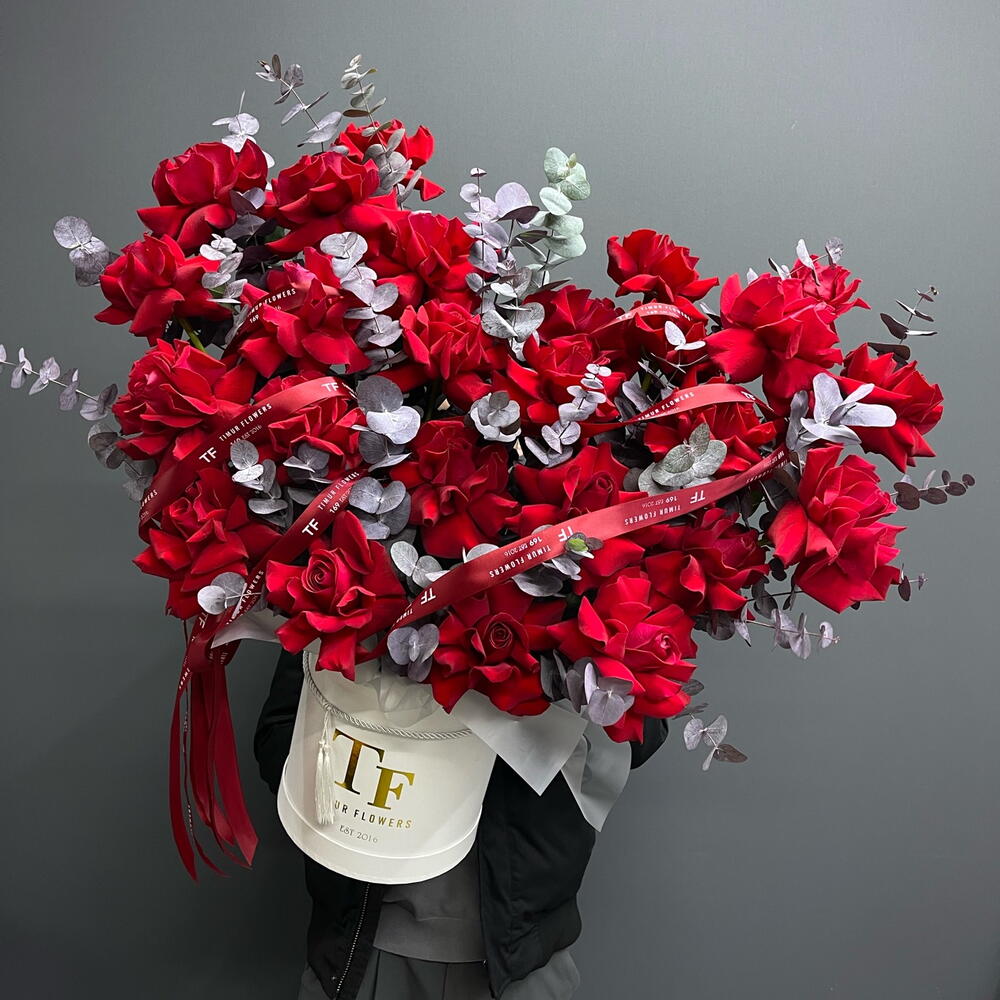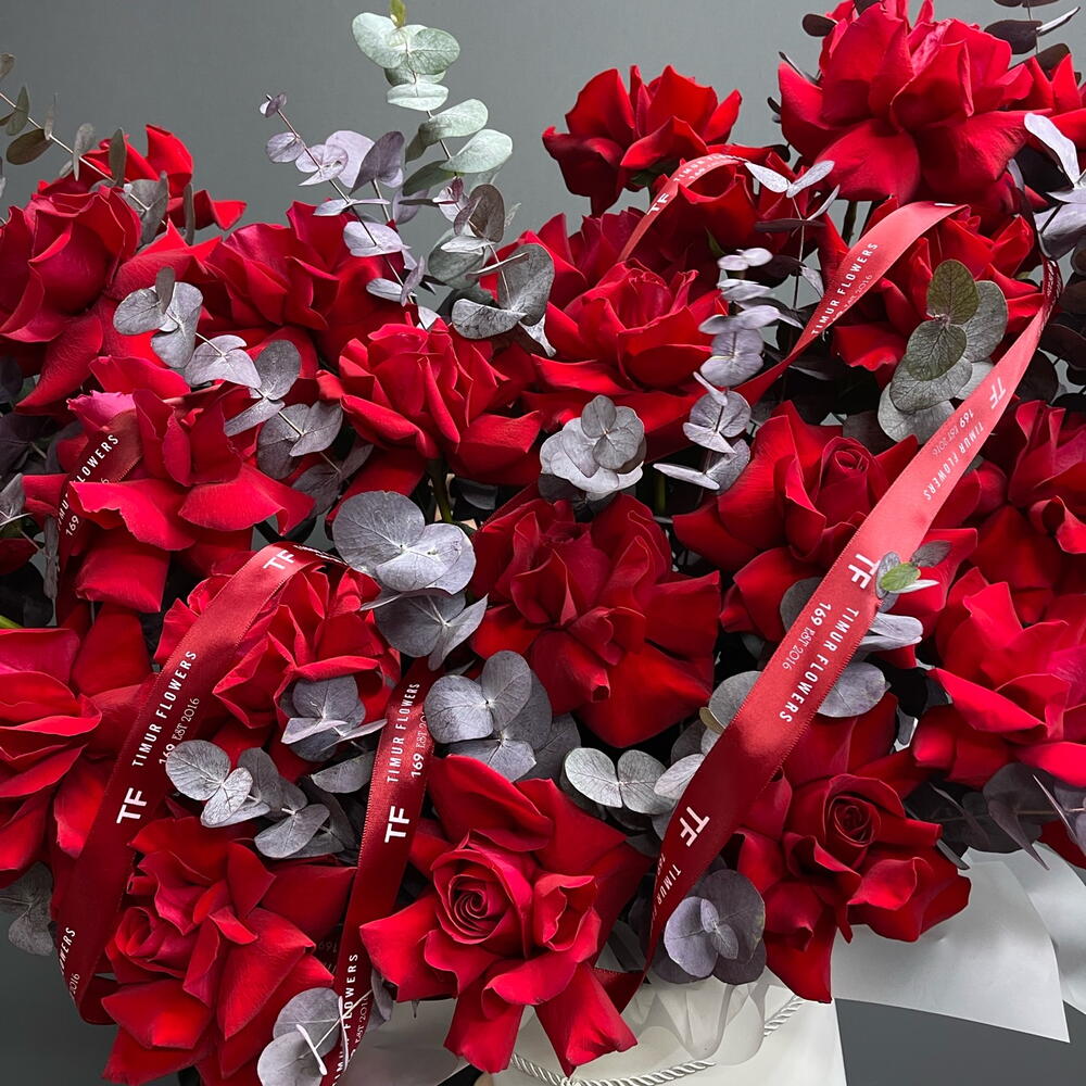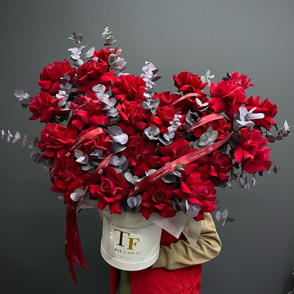 Голландиялық раушан - 25 дана Эвкалипт Қоспасы - 19 дана Тубус - 1 дана Лента алтасная - 5 дана