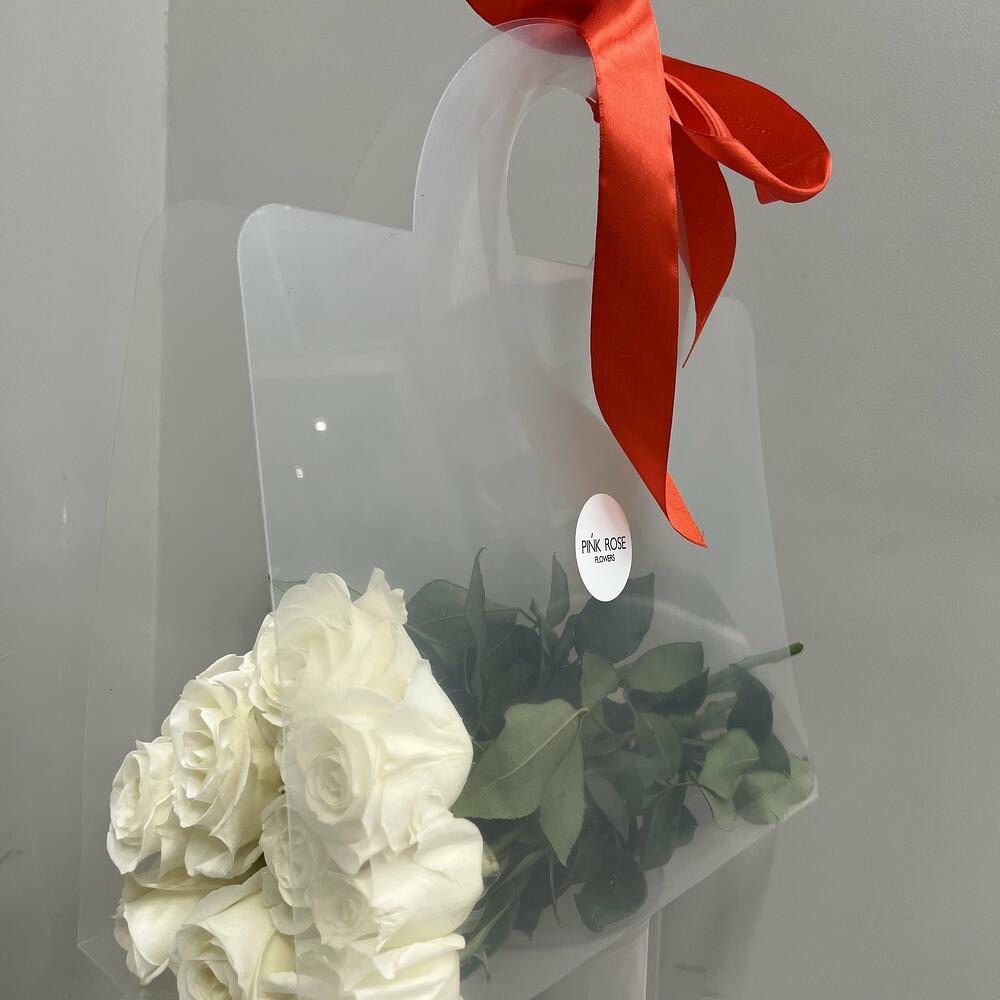 Букет из голландских белых роз в переноске от Pink Rose - это изысканная композиция из свежих цветов, олицетворяющая нежность и чистоту. Роскошные белоснежные розы в стильной упаковке создадут атмосферу элегантности и возвышенности, подчеркивая особый момент.
