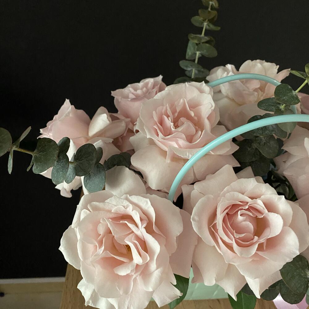 Эвкалипт - 2 дана Атласты таспа - 2 дана Тыныштық - 1 дана Роза французская - 11 дана Флористикалық Оазис - 1 дана тұтқалары бар қолөнер пакеті - 1 дана