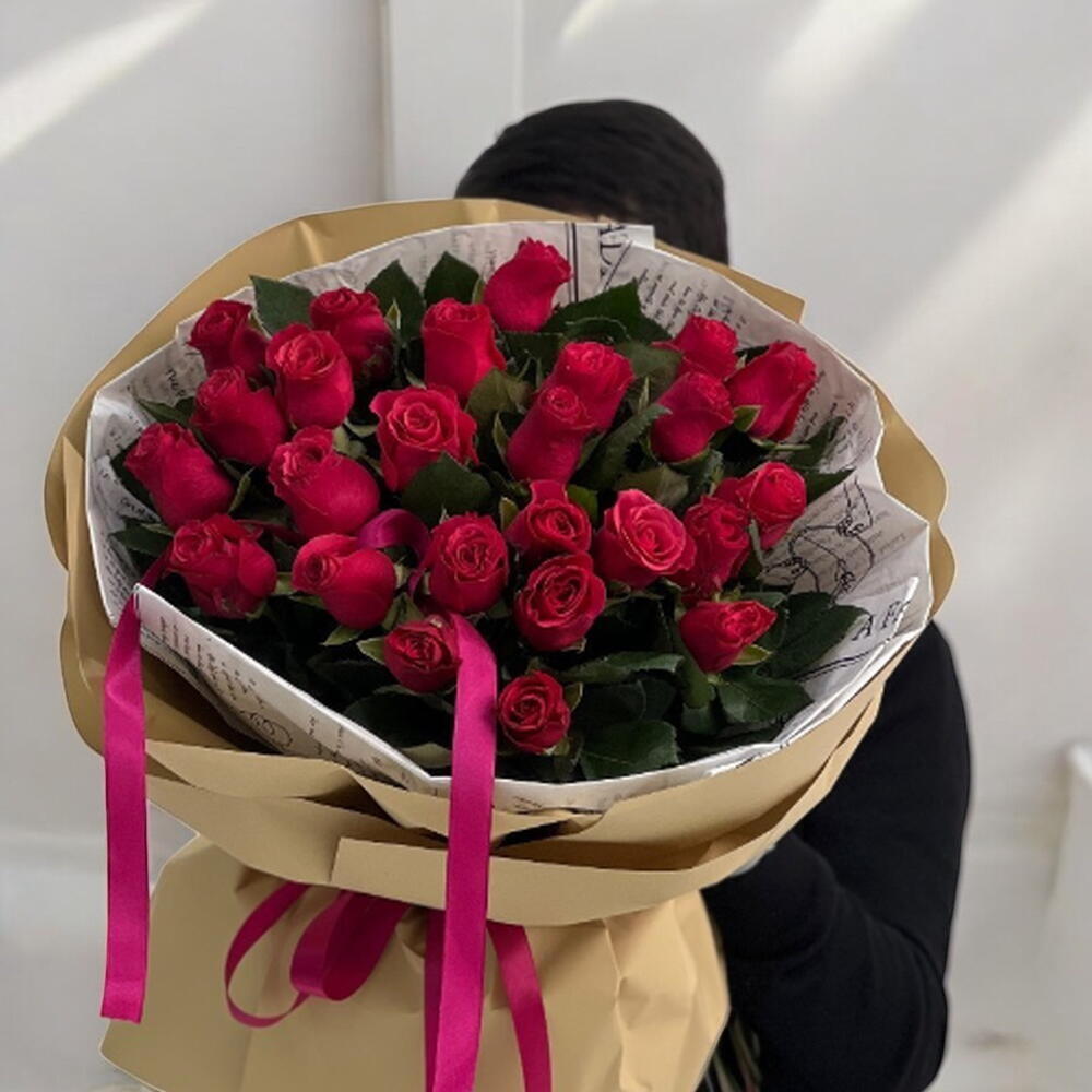 Этот восхитительный монобукет на 25 штук изысканных красных роз добавит нотку страсти и романтики в ваш подарок. Благородный насыщенный оттенок цветов символизирует настоящую, глубокую любовь, идеален для самых искренних и сердечных признаний. Передайте свои чувства подарком, который не оставит равнодушным!