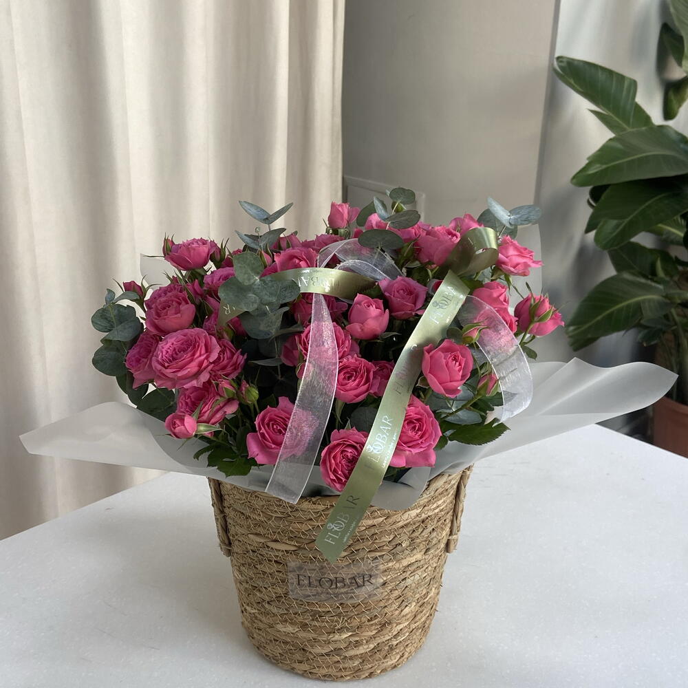 Кашпо - 1 дана Эвкалипт Цинерея - 1 дана бұта раушандары - 9 дана