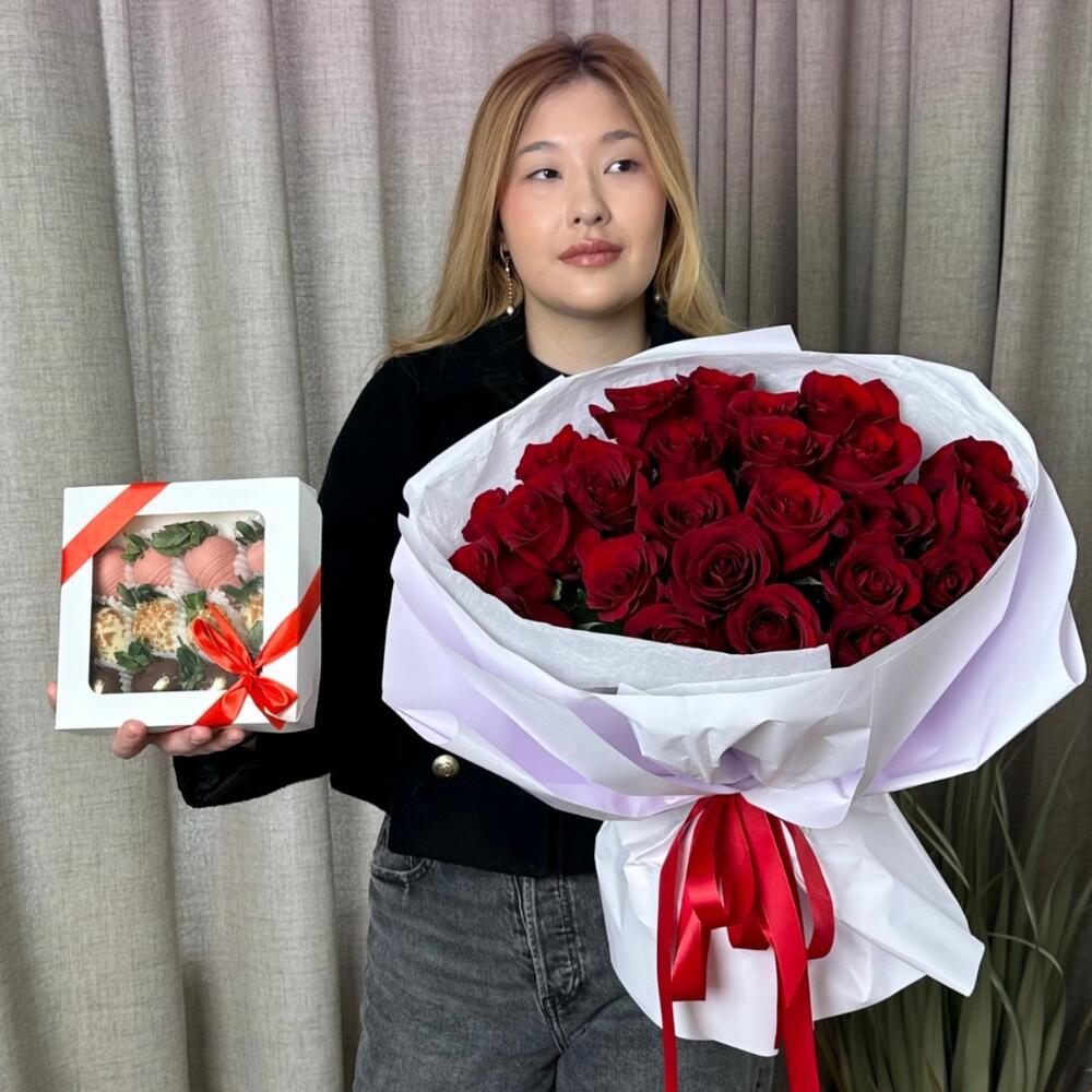 Шоколадтағы құлпынай - 12 дана розы эквадор - 25 дана