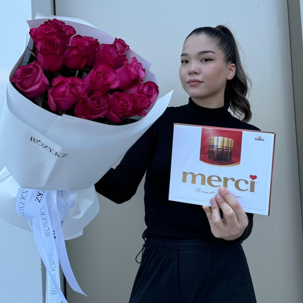 Комбо из 15 малиновых роз и Мерси