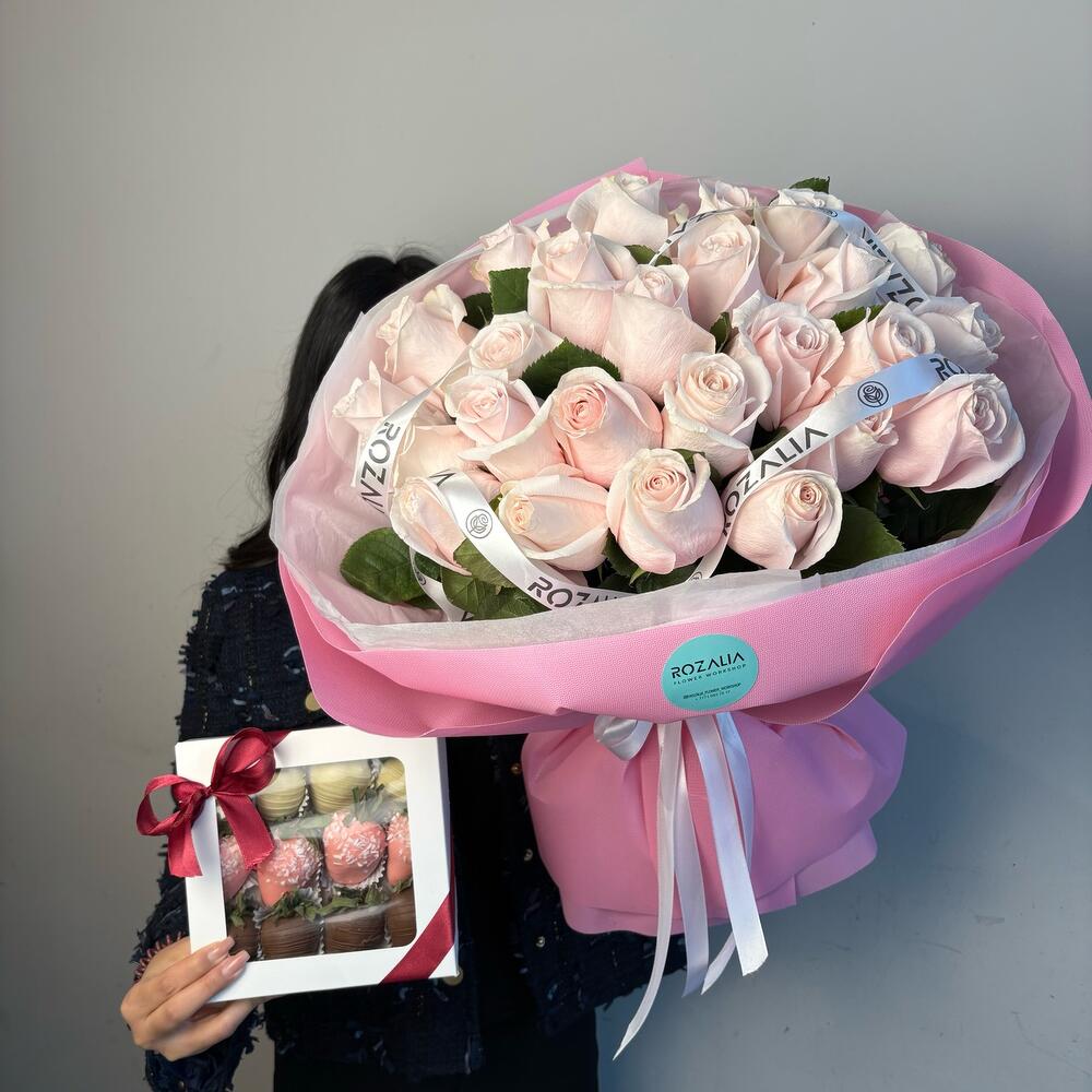 Роза Эквадор - 25 дана Шоколадтағы құлпынай - 12 дана
