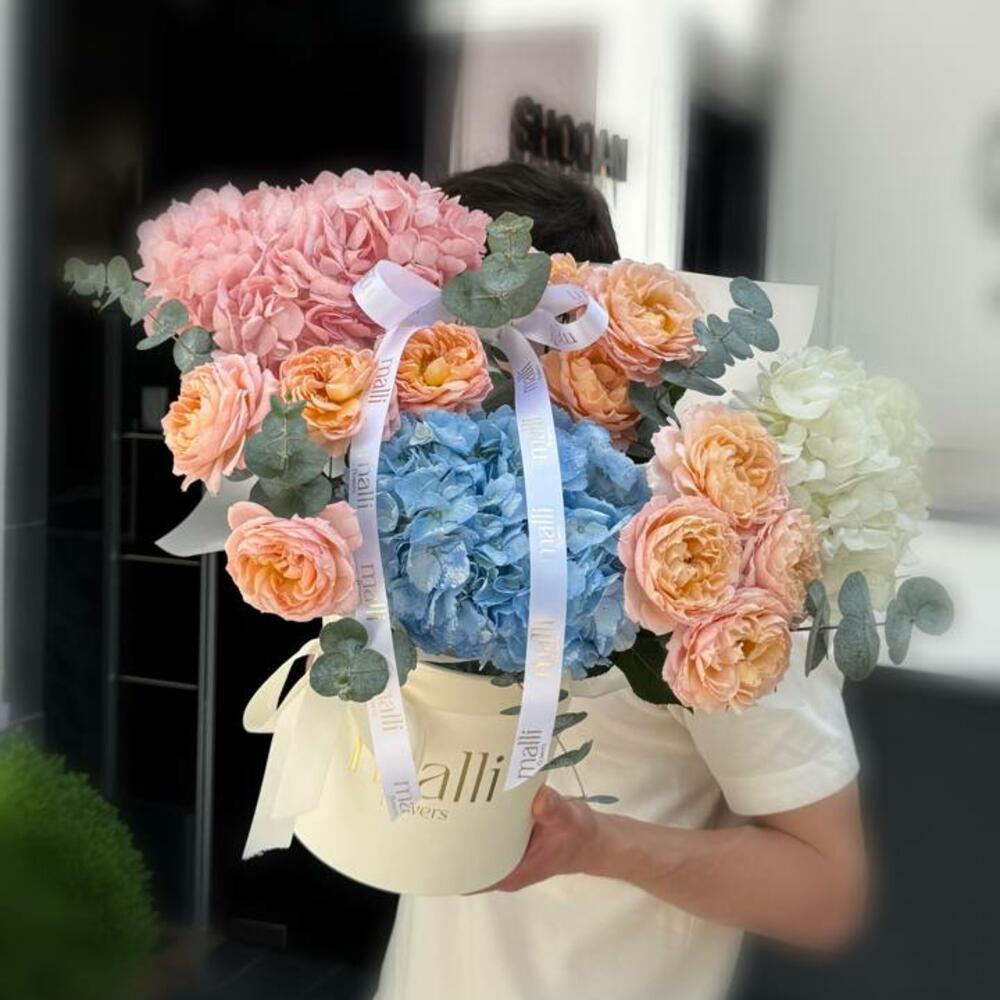 Эвкалипт - 1 дана премиум гортензия - 3 дана кустовые пионовидные розы - 3 дана