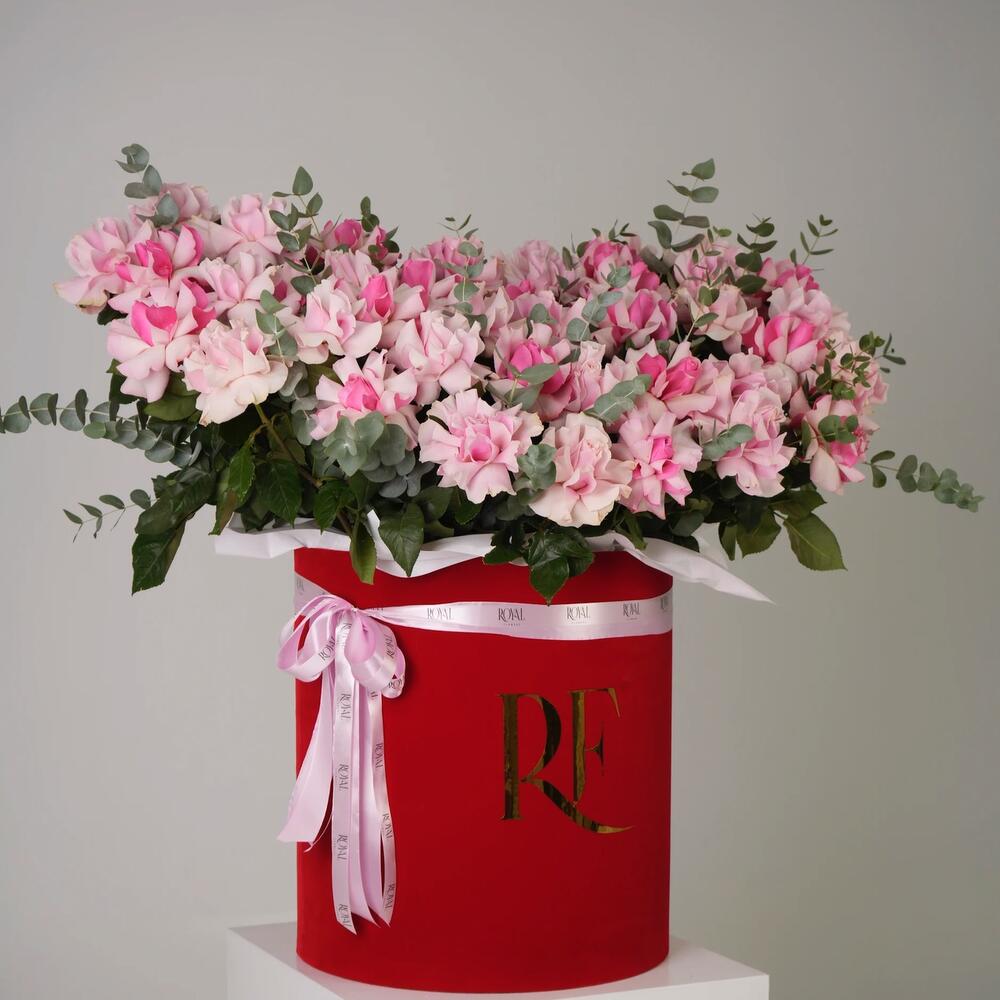 Этот невероятно впечатляющий букет представляет собой истинный шедевр цветочного искусства. Он состоит из 75 прекрасных роз, каждая из которых олицетворяет нежность, красоту и любовь. Этот букет идеально подходит для особых случаев и праздников, когда вы хотите порадовать близкого человека или выразить свою глубокую любовь. Оформление этого букета также заслуживает внимания. Он размещен в прочной цилиндрической коробке, украшенной элегантными деталями. Коробка подчеркивает роскошь и изысканность букета, а также обеспечивает долговечность и удобство при транспортировке и представлении букета.
