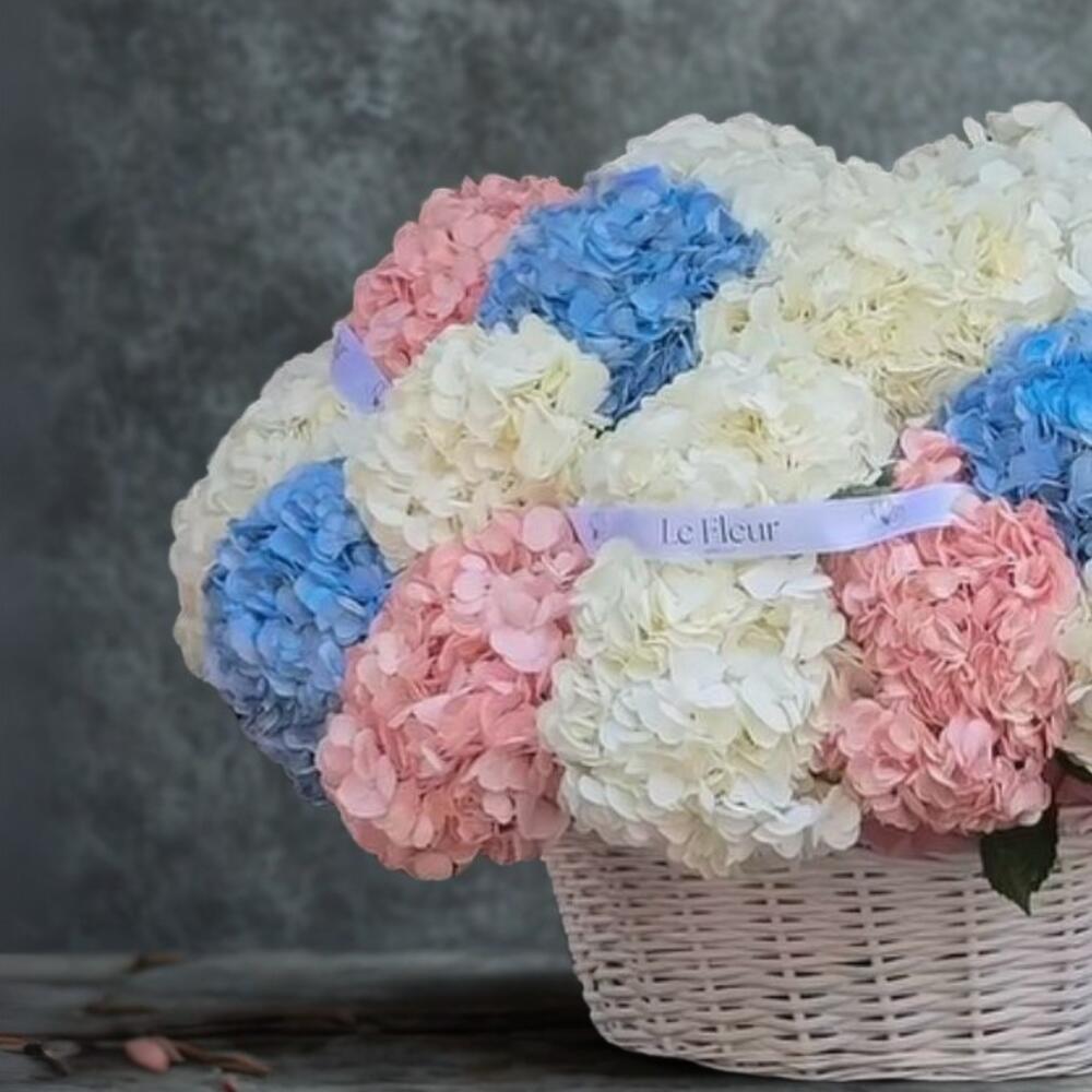 Состав: 21 гортензия, корзина. 💬 Воздушная и масштабная композиция, словно пушистые облака, собранные в элегантной корзине. Стильный акцент для дома, офиса или роскошного подарка.