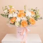 Гипсофила - 1 дана Лизиантус - 2 дана Эвкалипт - 2 дана Раушан - 7 дана Бұталы хризантема - 3 дана Гвоздика - 5 дана Қорап - 1 дана