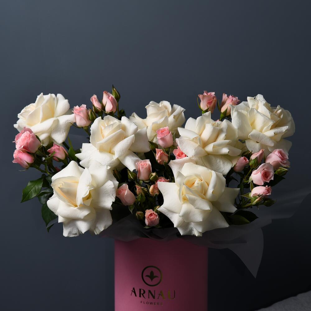 Раушан - 7 дана Бұта раушаны - 6 дана Қорап - 1 дана