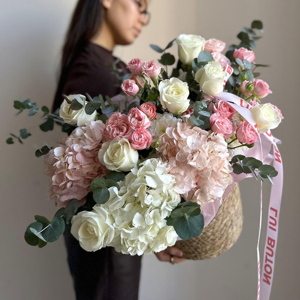 Композиция с мягким настроением и деликатной подачей. Цветы собраны в аккуратную форму, которая сохраняет свою красоту и свежесть. Такой подарок запомнится надолго и станет искренним жестом внимания