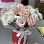 Гүл композициясы «Зефиринка» Әрбір бөлшекте нәзіктік пен тәттілік! Осы талғампаз қорапта раушан гүлдері мен хризантемалар жиналған — олар махаббат пен қуаныштың белгілері. Бір мезетте қуанта да, таңғалдырғың келетін адамдарға арналған мінсіз сыйлық. Әрбір гүлдік үйлесім түс пен хош иістің гармониясын тудыратындай таңдалған, ал ұқыпты қорап композицияны стильді әрі беруге ыңғайлы етеді.