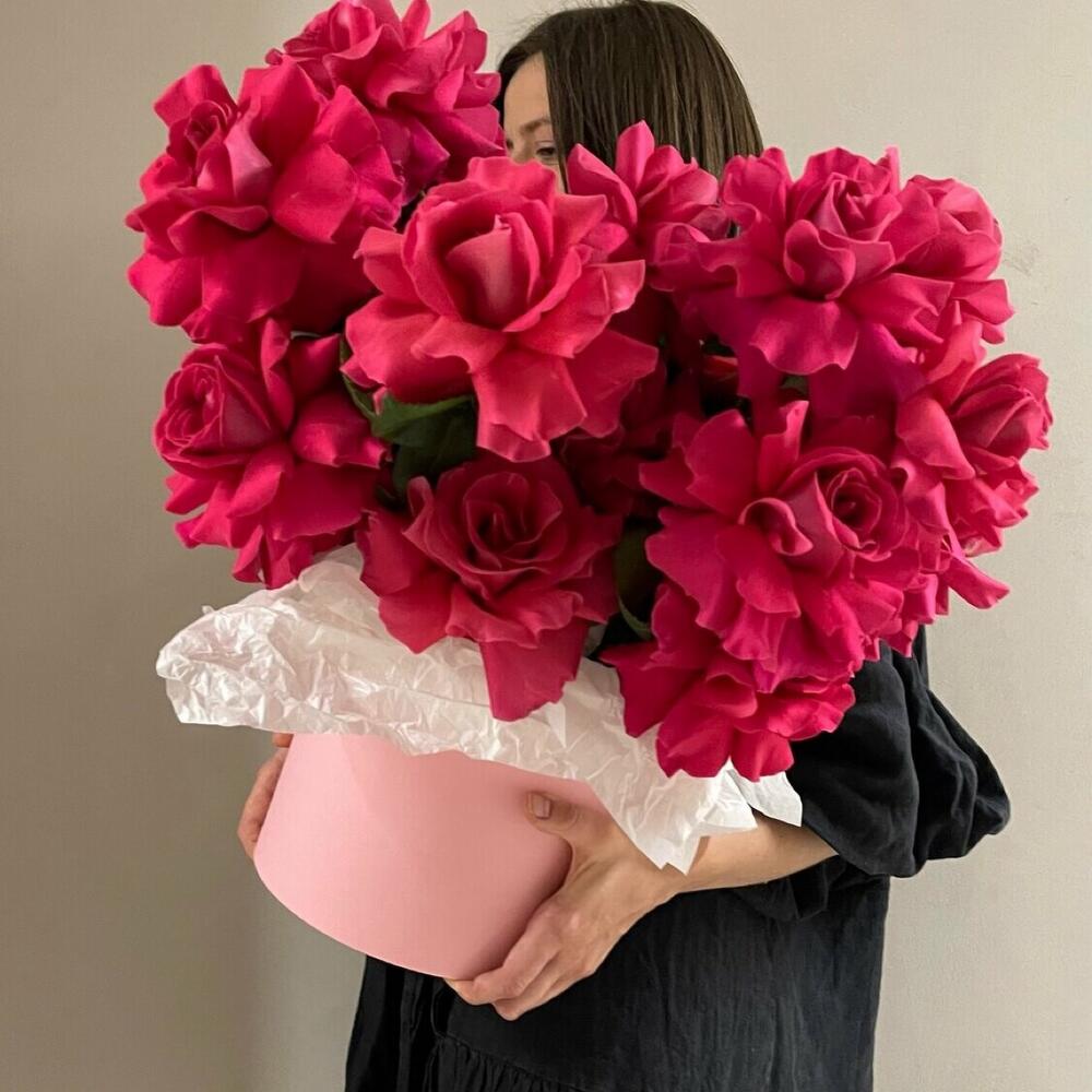 Монокомпозиция из ароматнейших французских роз сражает наповал всех: получателя, дарителя, а также всех, в чье поле зрения она попадает. Каждый лепесток розы вывернут вручную по специальной технологии, это никак не влияет на стойкость цветов. Нахождение цветов в специальной флористической губке внутри шляпной коробки, наоборот продлевает их жизнь, так как получателю достаточно поливать ее в 2-3 местах раз в 1-2 дня. Указаны примерные размеры, чтобы вы могли представить внешний вид и масштаб, но фактически размеры могут немного отличаться.
