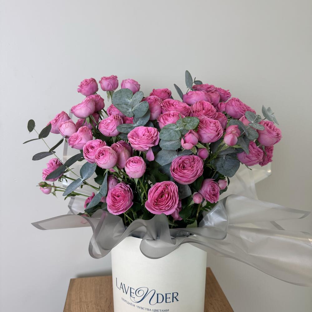 Кустовые пионовидные розы, оформленные в коробке, будто созданы для особых моментов и признаний.