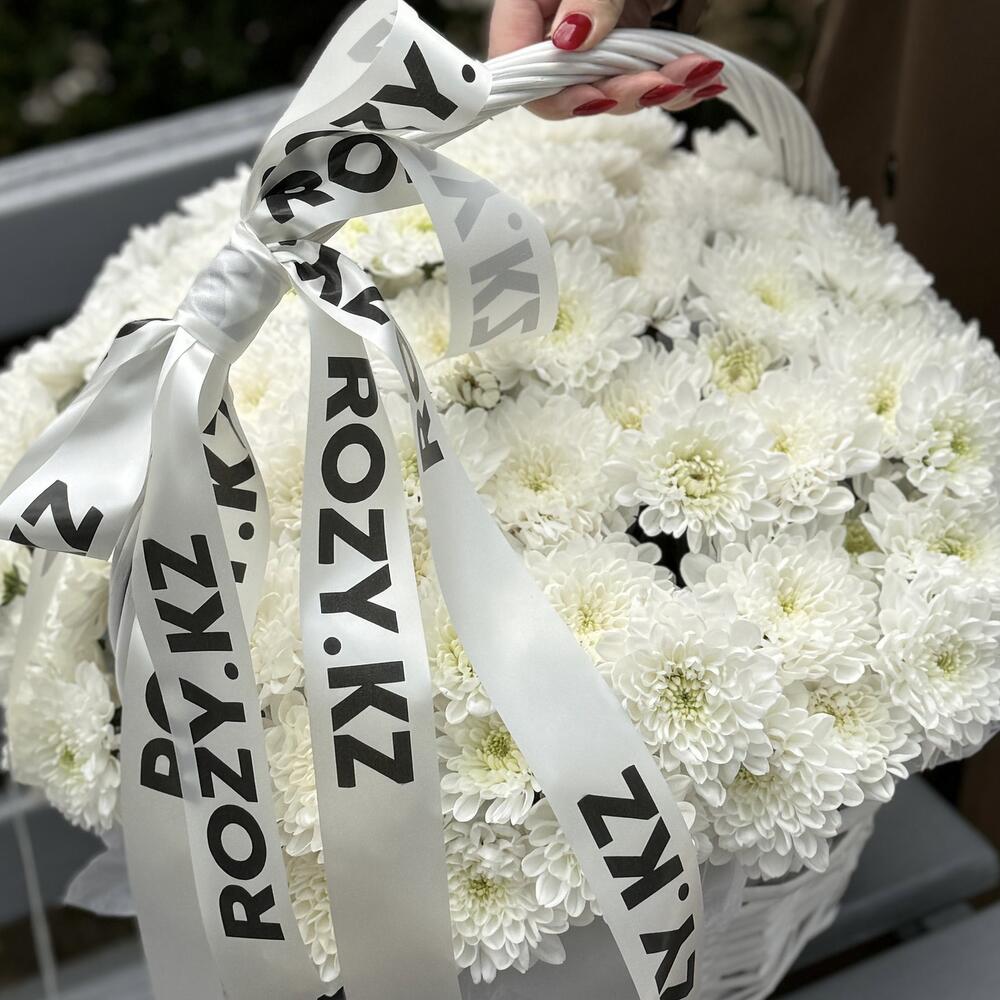 Корзина с белыми хризантемами — стильная и универсальная композиция для любого повода. Символ чистоты, искренности и заботы. Подойдёт для подарка, оформления офиса или дома