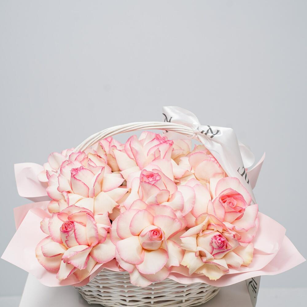 Наикрасивейшая корзина из раскрытых голландских роз, придаст весеннюю легкость и уют в атмосфере. Такая композиция подходит под разные мероприятия, порадуйте себя и близких!