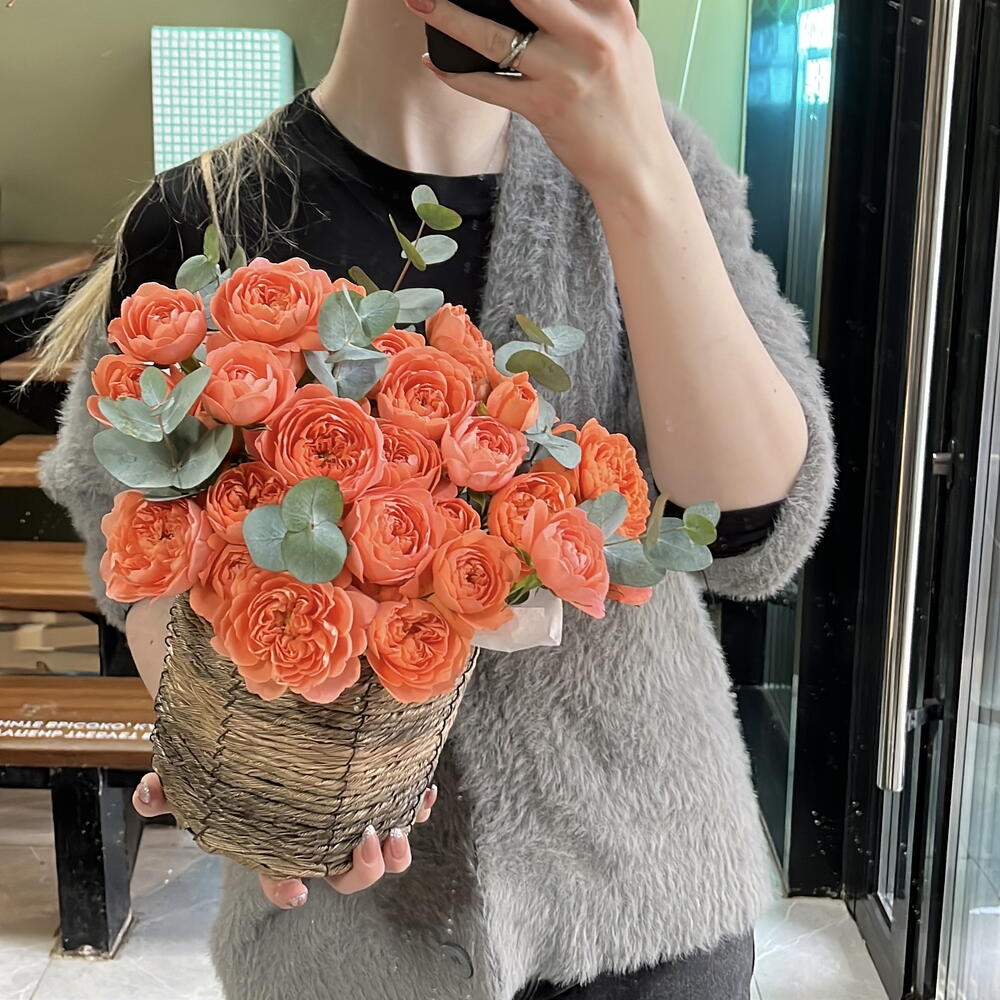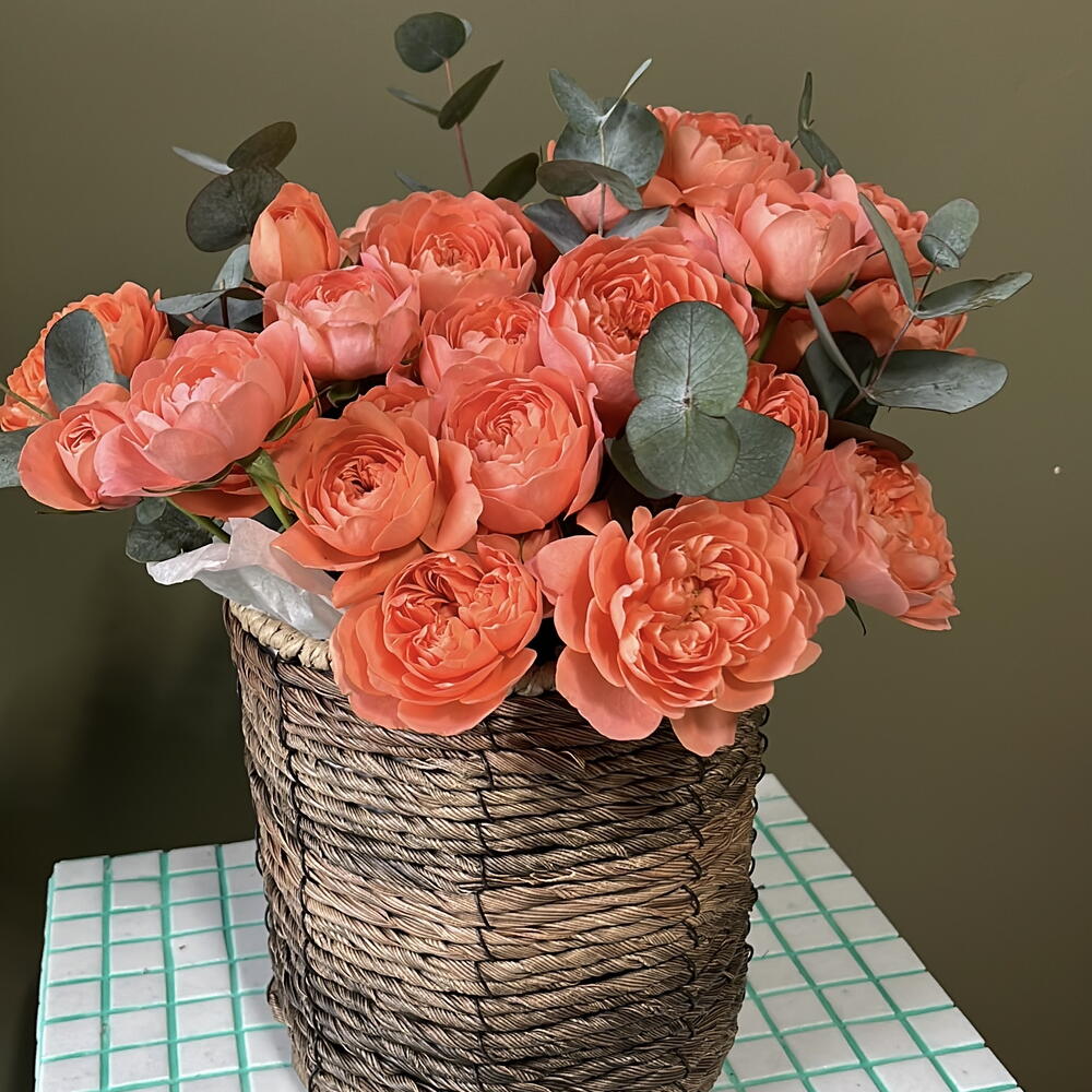 Эвкалипт - 1 дана бұта раушандары - 7 дана
