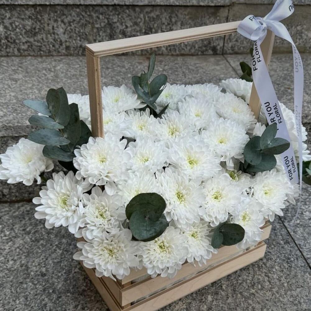 Изысканная корзина из хризантем и эвкалипта украсят ее вечер ❤️