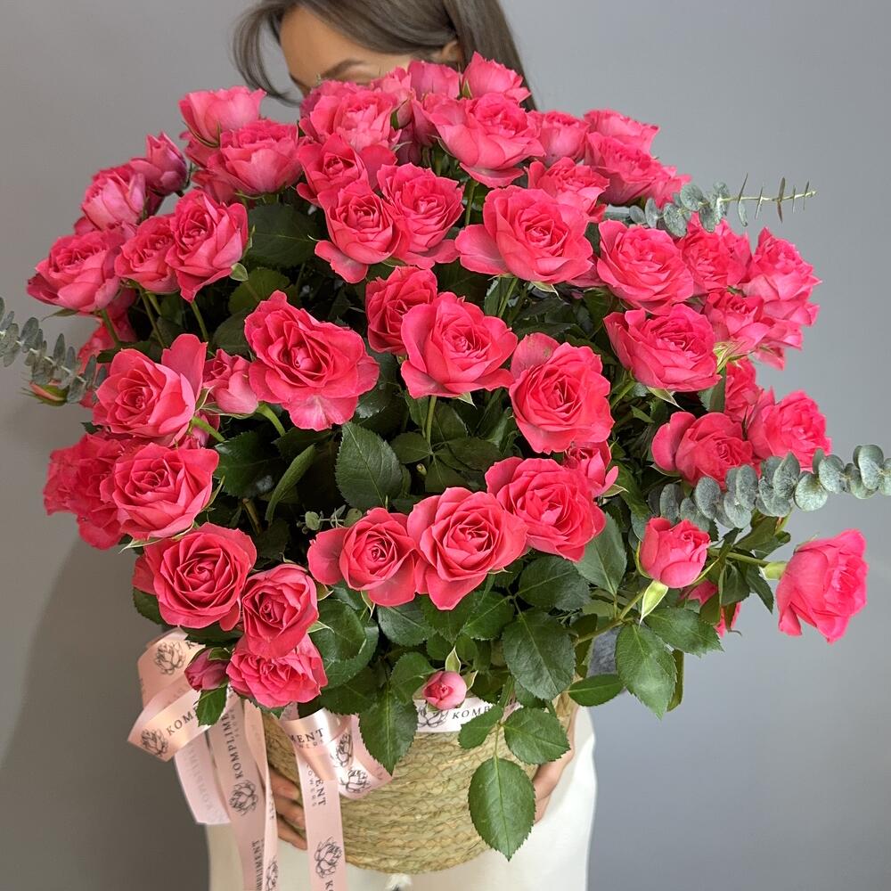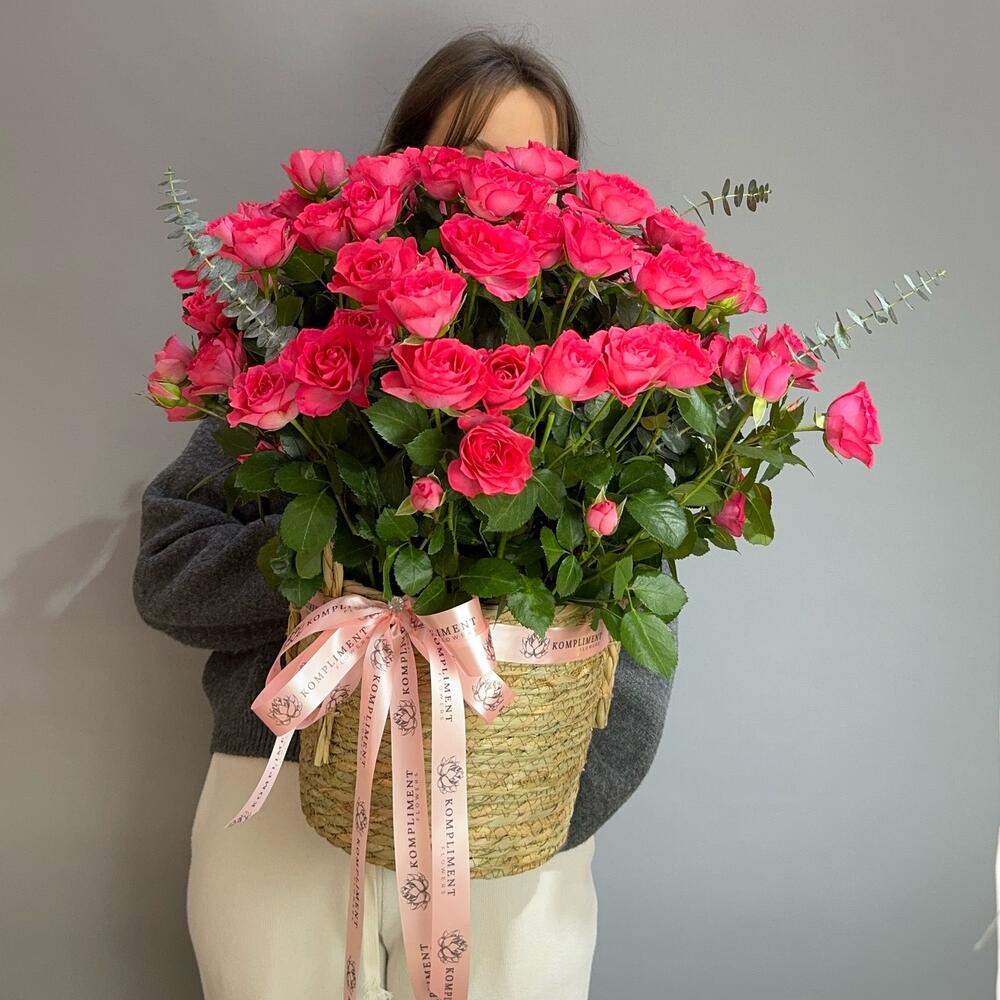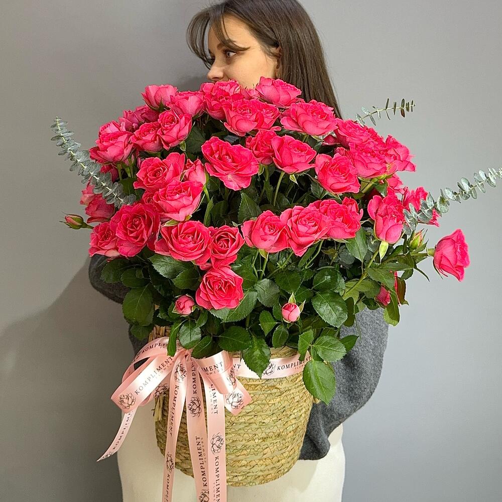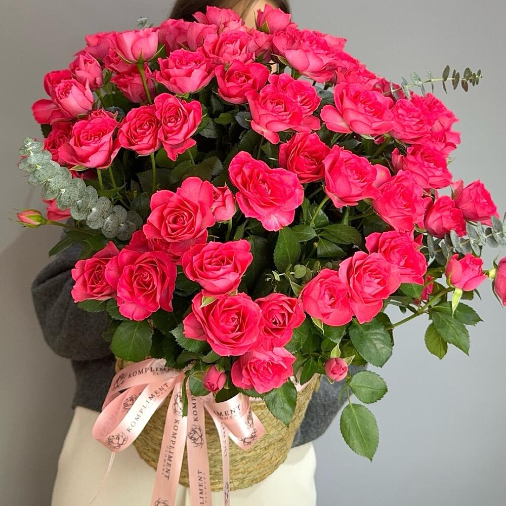 Корзина с малиновой спрей розой