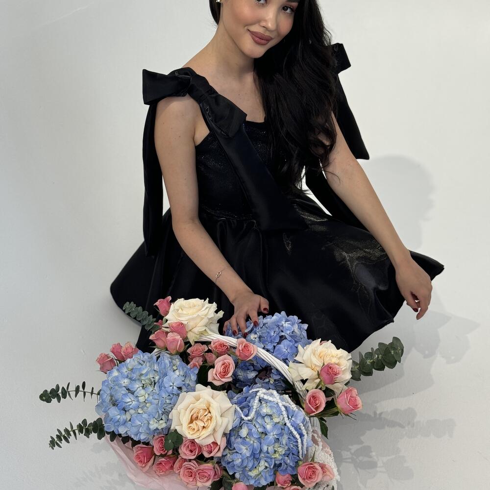 Эвкалипт - 10 дана Бір бас гүлі - 3 дана Спрей роза - 9 дана гортензии голубые - 3 дана